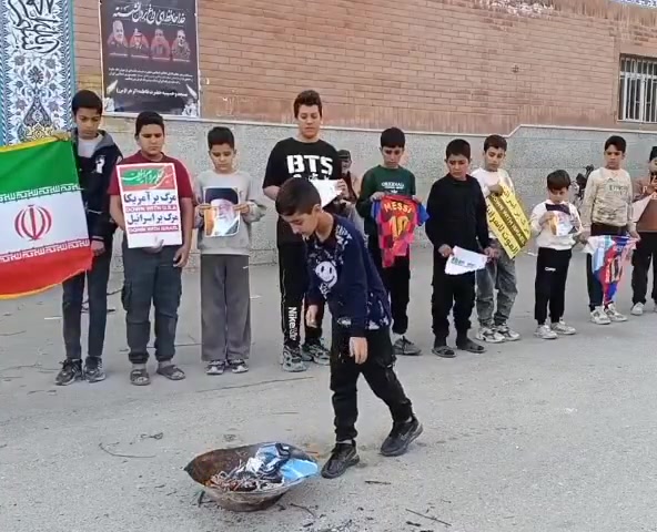 不滿梅西與特朗普會面,有伊朗兒童焚燒梅西球衣+舉標語抗議