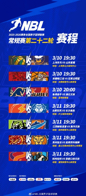 【賽程】NBL常規(guī)賽第二十二輪將于3月10日-3月11日進(jìn)行!