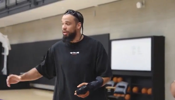 狄龍?zhí)岬綄π】ㄕf垃圾話沒用,小卡只會回復“放松點,兄弟,打球吧,來吧”,試圖掐他推他用身體撞他,小卡還是說“喲哥們,你就打球吧”,然后小卡走過去就是一記后仰跳投。