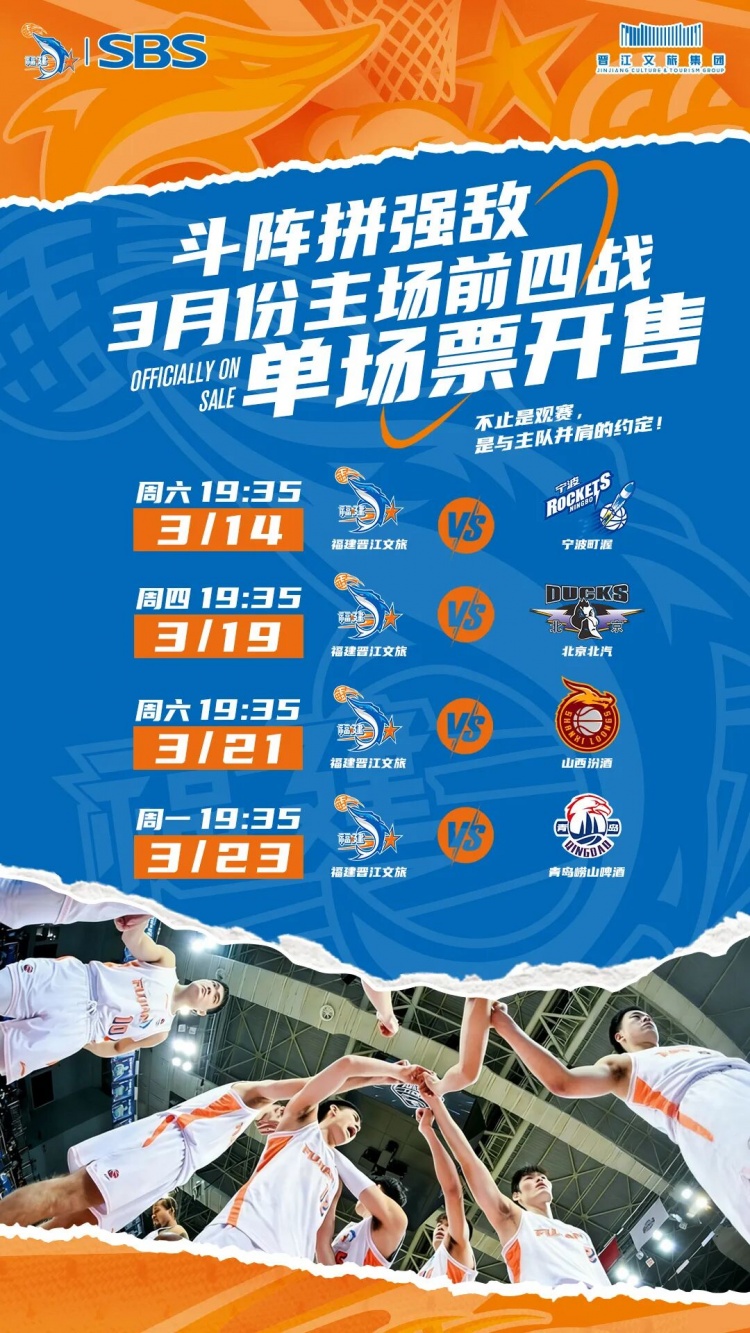 隨著全明星周末的圓滿落幕,2025-2026CBA聯(lián)賽常規(guī)賽第二階段戰(zhàn)火重燃,3月14日19:35福建晉江文旅男籃將在首個主場迎戰(zhàn)寧波町渥男籃,誠邀球迷朋友們來到現(xiàn)場觀賽,赴熱血之約,燃主隊之勢,以助威護航,共守主場榮光!
