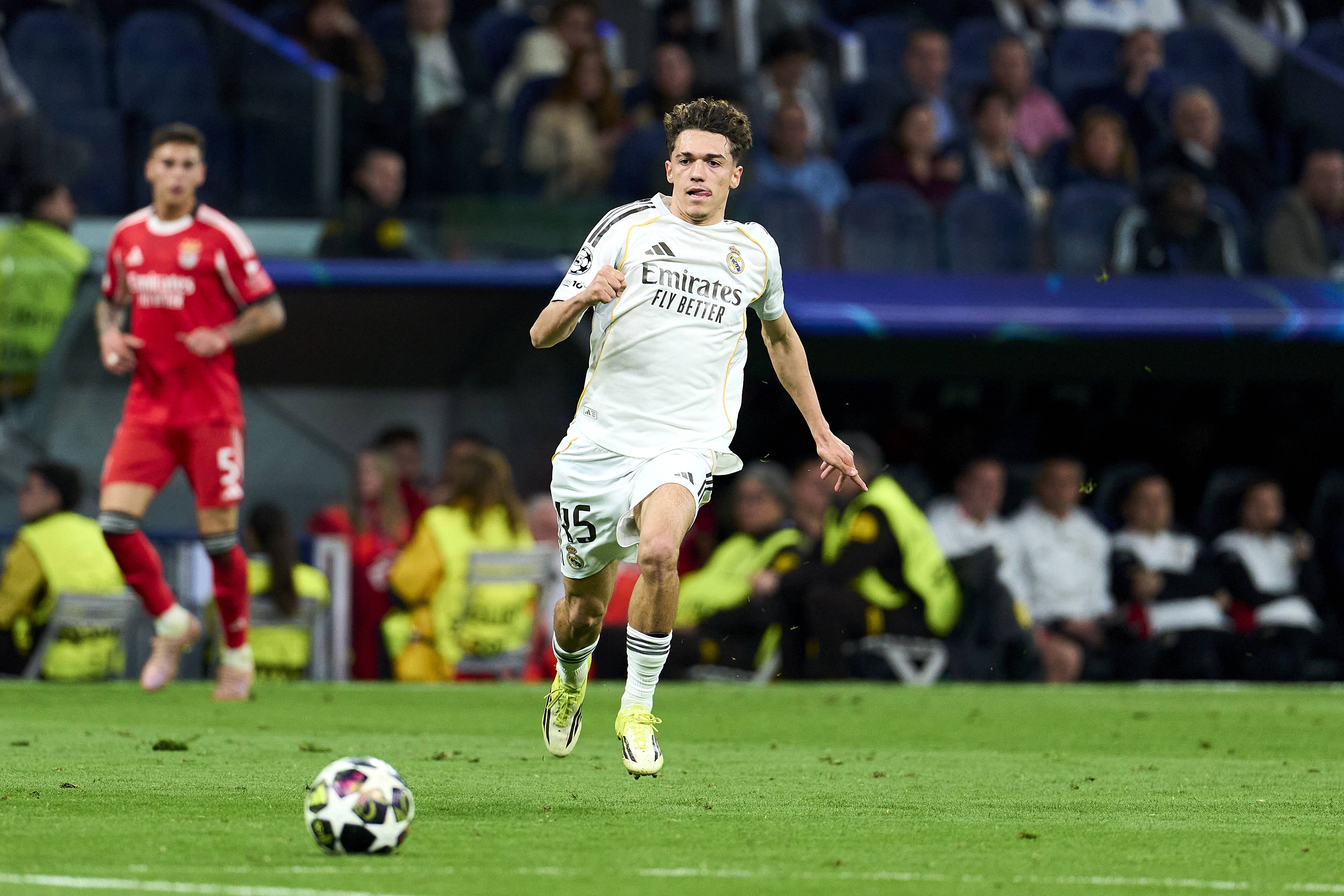 這位小將的足球生涯曾輾轉(zhuǎn)馬競、赫塔費(fèi)和萊加內(nèi)斯青訓(xùn)營,最終在2023年加盟皇馬青訓(xùn)。他的一線隊首秀恰逢對陣本菲卡,而正是本菲卡對他的關(guān)注,促成了他最終加盟皇馬的交易。2025年,他兩度與皇馬續(xù)約:一次是年滿18歲的常規(guī)續(xù)約,另一次則是8月的重磅續(xù)約,球隊用一份至2030年的合同將他牢牢鎖定,彼時他的爆發(fā)式成長已初露端倪。