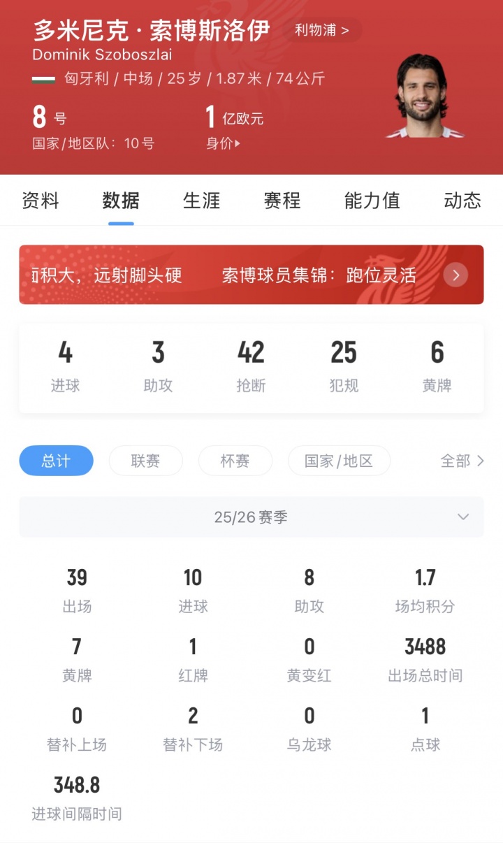 索博斯洛伊現(xiàn)年25歲,他本賽季出場(chǎng)39次貢獻(xiàn)10球8助,他此前德轉(zhuǎn)身價(jià)為8500萬(wàn)歐,與利物浦的合同到2028年。
