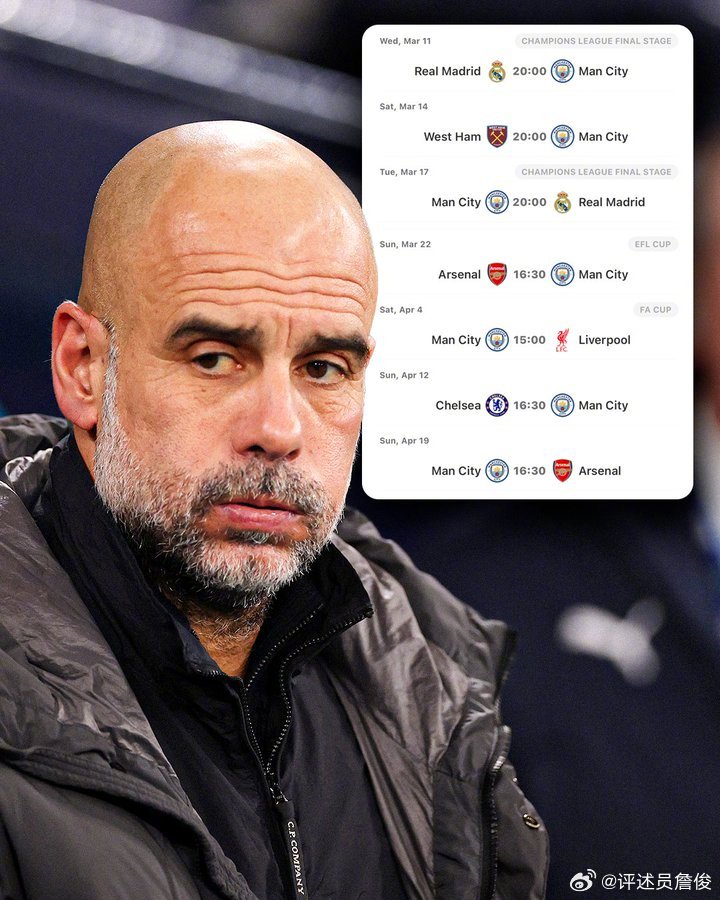 詹俊寫道:足總杯八強的抽簽結(jié)果讓未來這一個多月曼城惡戰(zhàn)連場,最大程度上考驗他們的陣容深度。所幸的是據(jù)說科瓦契奇已經(jīng)恢復(fù)訓練,隊內(nèi)只有格瓦迪奧爾一名傷兵。