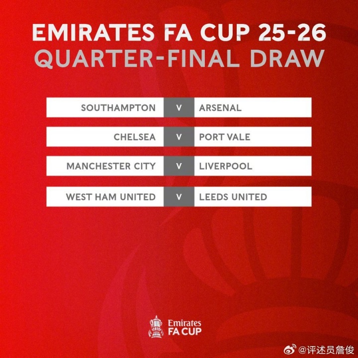 直播吧03月10日訊 足總杯1/4決賽對陣出爐,其中曼城遭遇利物浦。