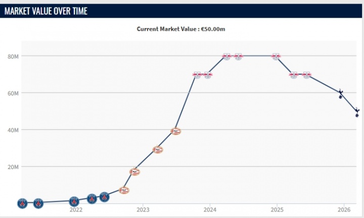 直播吧03月10日訊 德轉3月9日更新英超球員身價,其中哈維·西蒙斯身價降至5000萬歐。