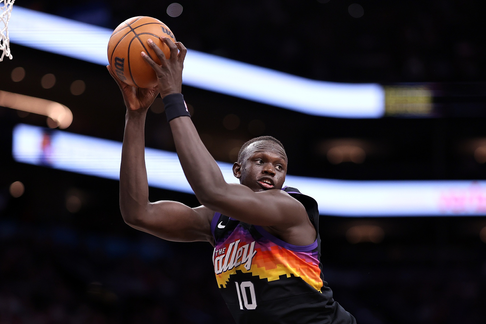 此役太陽10號秀馬盧阿奇表現(xiàn)積極,出場20分鐘4投2中,拿到4分9籃板2蓋帽,正負(fù)值+10。
