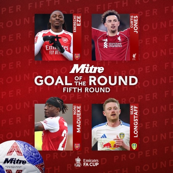 直播吧3月10日訊 足總杯公布賽事第五輪最佳進球候選,埃澤、柯蒂斯·瓊斯、馬杜埃凱和肖恩·朗斯塔夫的進球入選。