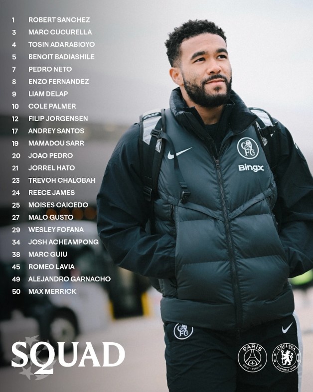 直播吧3月11日訊 北京時(shí)間周四凌晨的歐冠1/8決賽首回合,切爾西將前往客場(chǎng)調(diào)整巴黎圣日耳曼。目前,藍(lán)軍已經(jīng)公布了本場(chǎng)比賽大名單,里斯·詹姆斯、帕爾默領(lǐng)銜,埃斯特旺缺陣。