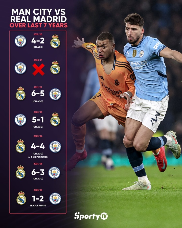 皇馬與曼城再歐冠共有過交手15場,其中有12場是在淘汰賽中,淘汰賽皇馬4次晉級,曼城2次。小組賽3場交手兩隊各1勝1平1負(fù)。