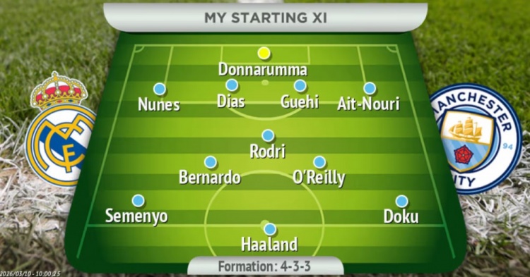 曼晚預(yù)測曼城首發(fā):多納魯馬、努內(nèi)斯、魯本·迪亞斯、格伊、艾特-努里、羅德里、B席、奧賴利、塞梅尼奧、哈蘭德、多庫