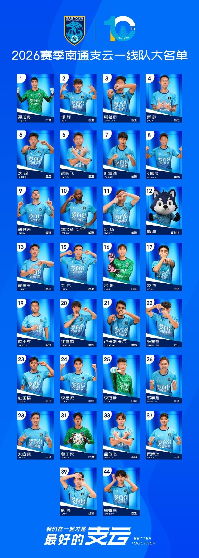 春?jiǎn)⒔#G茵逐光!2026賽季中甲聯(lián)賽即將戰(zhàn)火重燃,南通支云足球俱樂(lè)部正式公布新賽季一線隊(duì)大名單。陣容煥新,目標(biāo)堅(jiān)定!向著新賽季的榮耀全力沖刺,為南通足球續(xù)寫(xiě)新的輝煌篇章!